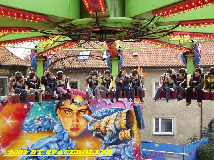 Und nun geht es richtig los, auch das Rad mit den Sitzen beginnt, sich um den waagerechten Horizont zu drehen: |
